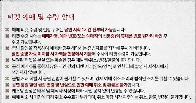 티켓 예매 시 주의사항