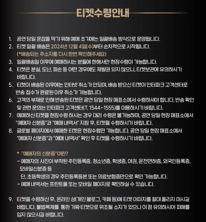 티켓 예매 시 주의사항