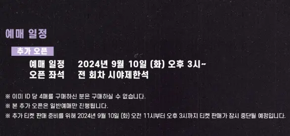 # 티켓 판매 준비로 인해 9월 10일(화) 오전 11시부터 오후 3시까지 티켓판매가 일시 중단됩니다.