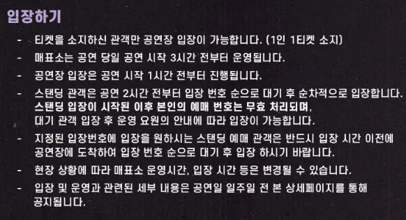 | 스탠딩 P석 | 154,000원 | 좌석 상세보기🔍 |