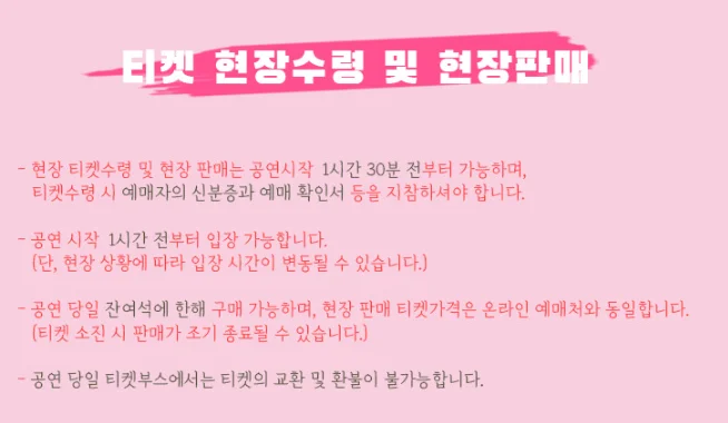 티켓 오픈 시간이 되면 예매 사이트가 자주 다운되며, 대기 순서가 매우 늦을 가능성이 매우 높습니다.