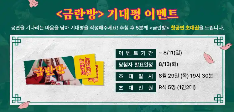 2024 창작가무극 '금란방'을 좋아하시는 분들은 아래와 같은 이벤트도 하고 있으니 이번 예매 기회를 놓치지 마세요.