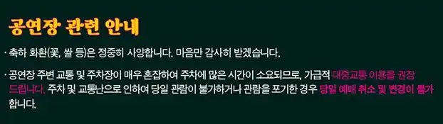 티켓 오픈 시간이 되면 예매 사이트가 자주 다운되며, 대기 순서가 매우 늦을 가능성이 매우 높습니다.