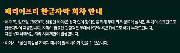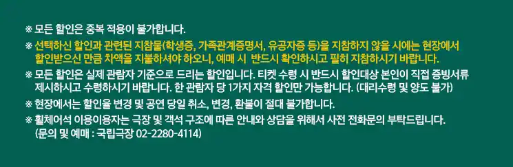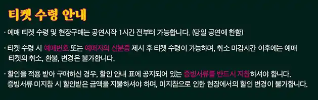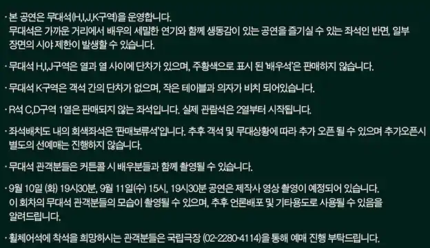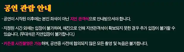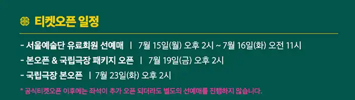 공연 일정은 배우 및 제작사 등의 상황에 따라 언제든 바뀔 수 있으니 꼭 확인 후 예매 하세요