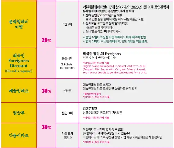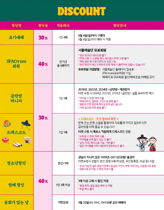| 조기예매할인 | 30% | 할인여부 확인🔍 |