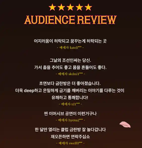 비밀스러운 공간에서 쉴 틈 없이 전개되는 스토리와 함께 짜릿하고 통쾌한 관극 체험을 선사할 예정입니다.
