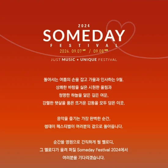 순간을 영원으로 간직하게 될 멜로디, 그 멜로디가 울려 퍼질 Someday Festival 2024에서 여러분을 기다리겠습니다.