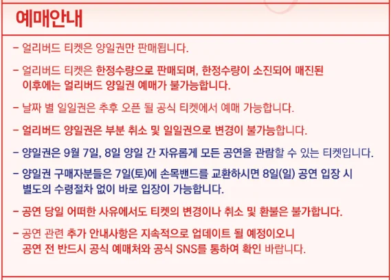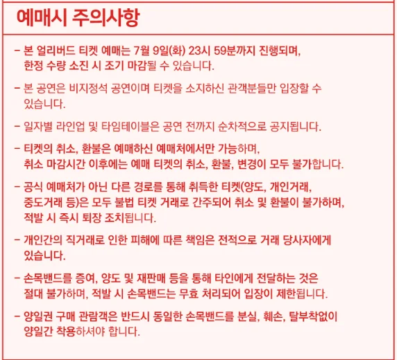 | 얼리버드티켓 | 양일권 139,000원 | 🔍 상세보기 |